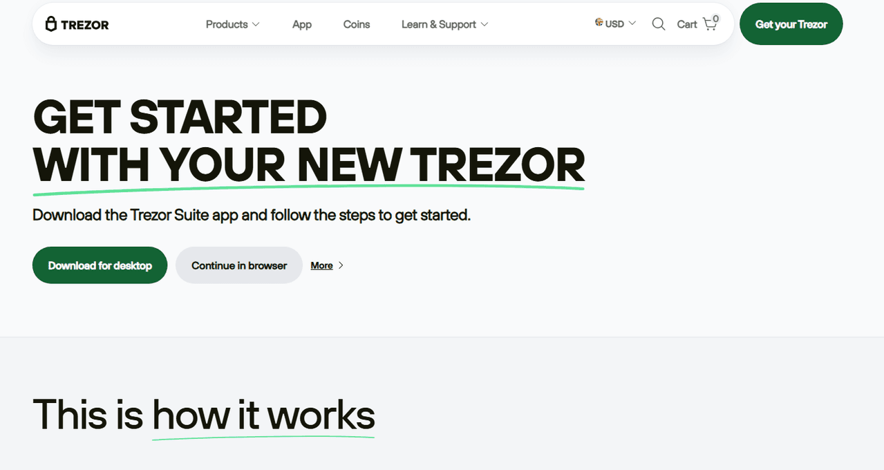 Think of Trezor.io/start as the “front door” to your hardware wallet experience.